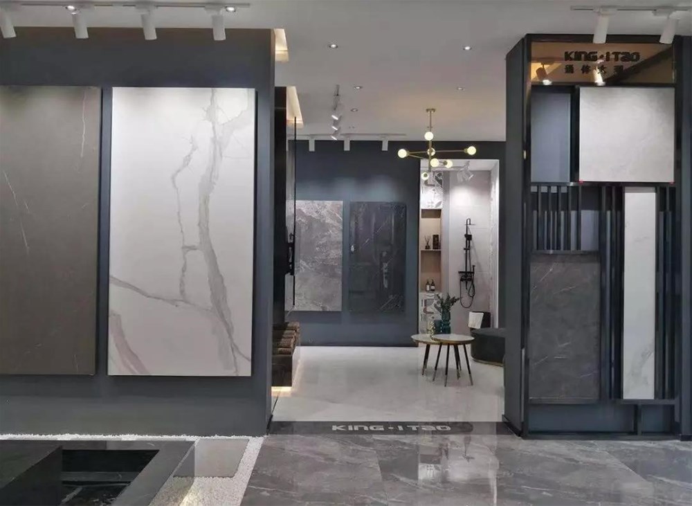暖灰色通体大理石KA9M009打造前台背景墙非常有味道,不愧是多年的畅销榜长青树。