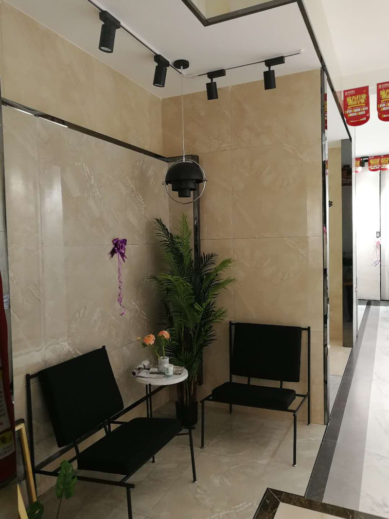 简单的铺贴方式与黑色框架融合相得益彰,
