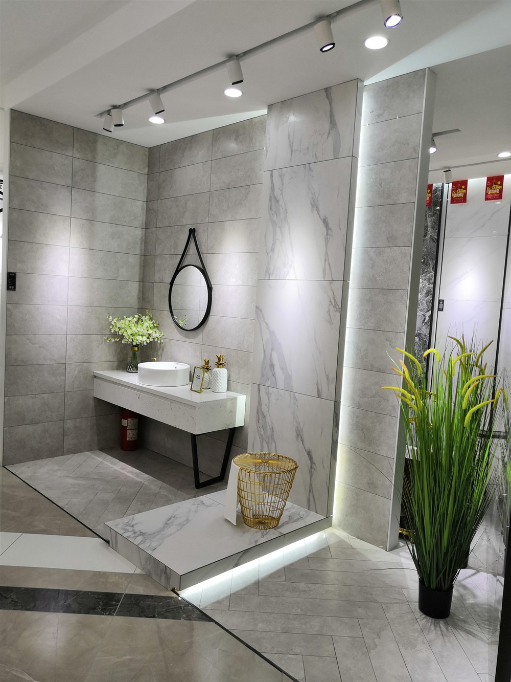 一类是时尚前沿的15度缎光釉,一类是现在热销的通体大理石 。